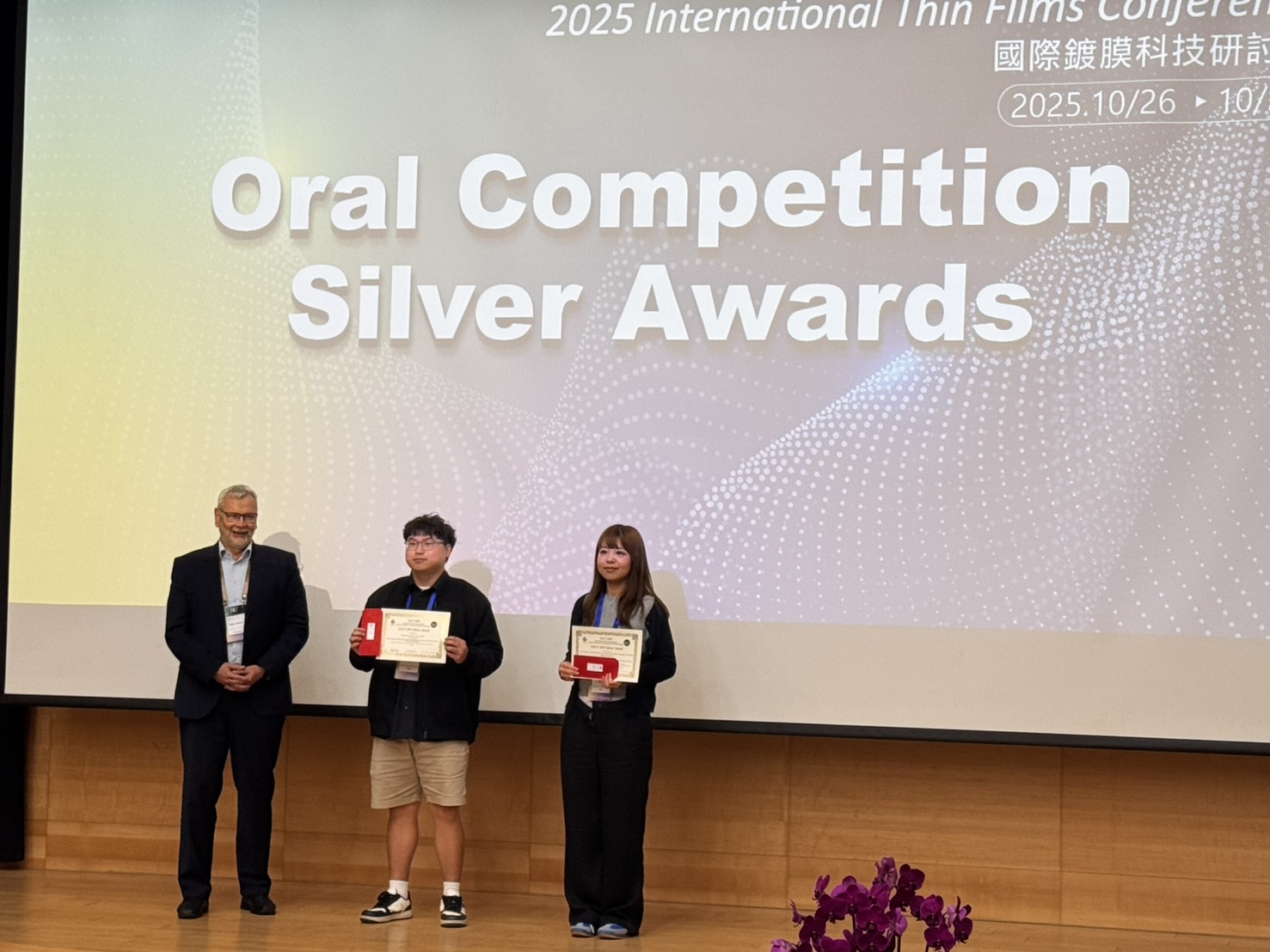 恭賀本系 張銀祐老師 指導本系李宗蒝同學參加TACT 2025 International Thin Film Conference榮獲 口頭發表競賽/銀牌獎 2025-10-29 AdminAdmin 碩班學生李宗蒝參加TACT 2025 International Thin Film Conference ,由來自28個國家、486篇發表中一路挺進決賽,獲得口頭發表競賽銀牌獎! (金牌獎由日本東京大學獲得)