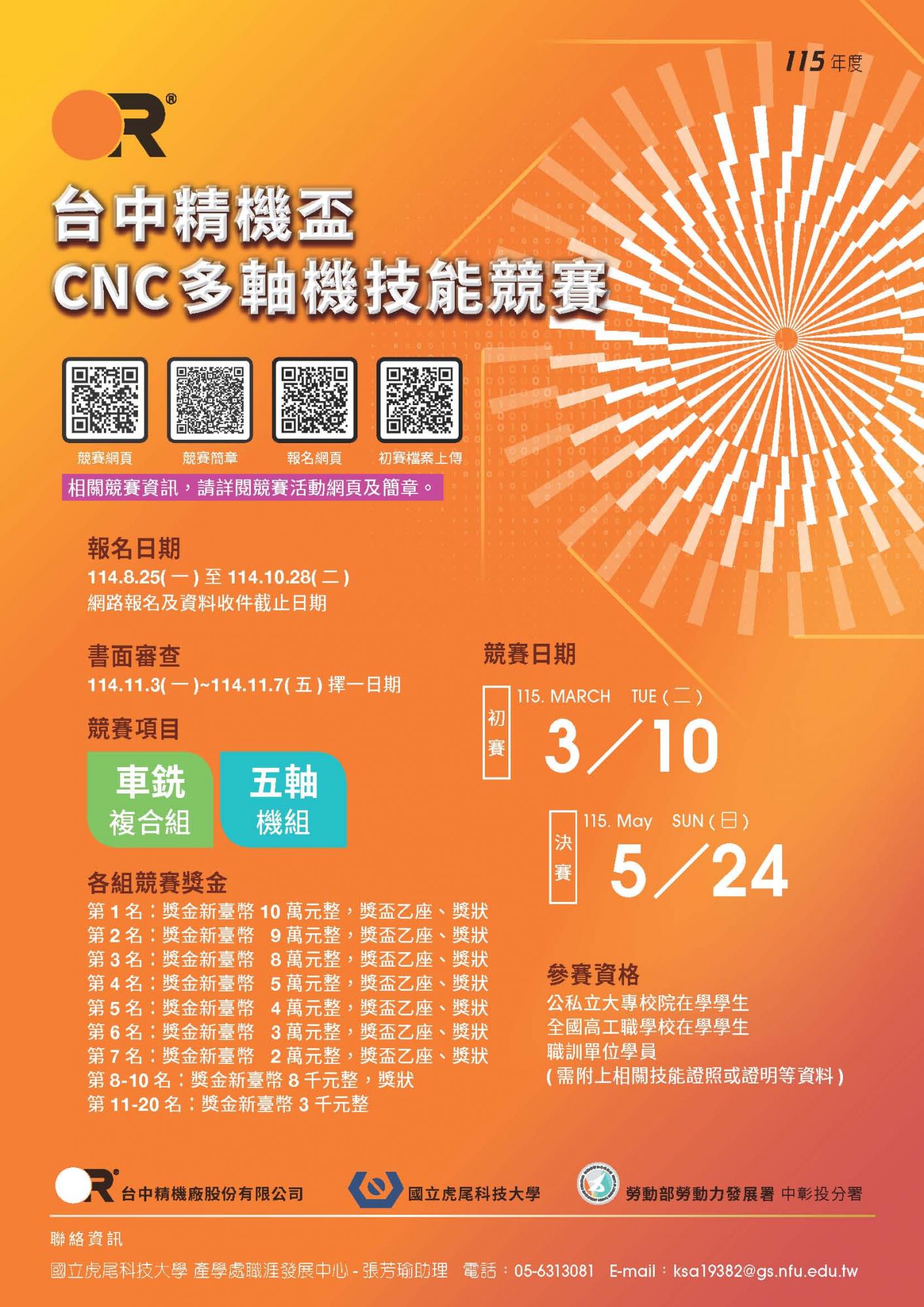 115年台中精機廠/國立虎尾科技大學/中彰投分署- 台中精機盃CNC多軸機技能競賽 2025-08-20 AdminAdmin 115年台中精機盃CNC多軸機技能競賽-海報 115年台中精機盃CNC多軸機技能競賽-海報 115年台中精機盃CNC多軸機技能競賽-簡章.pdf